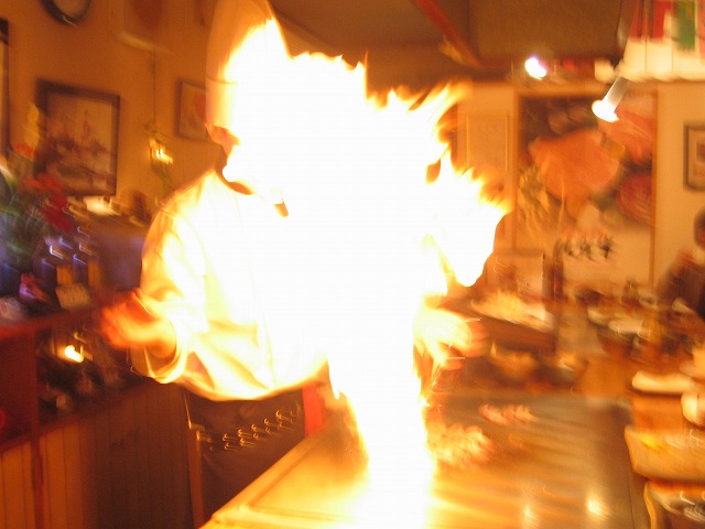 ファイヤー! おわぁー!マスターが、炎に・・・
